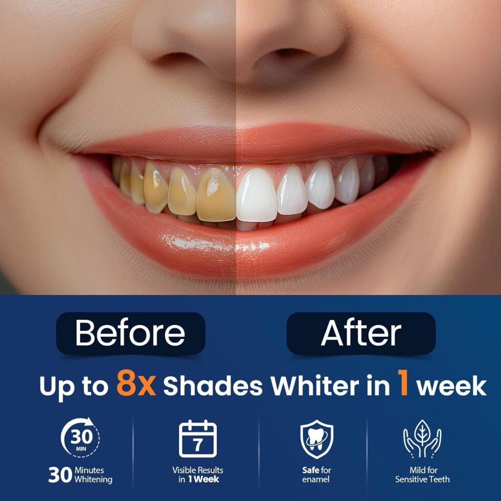 • Resultados rápidos: Dientes más blancos visibles después de una sola aplicación.
